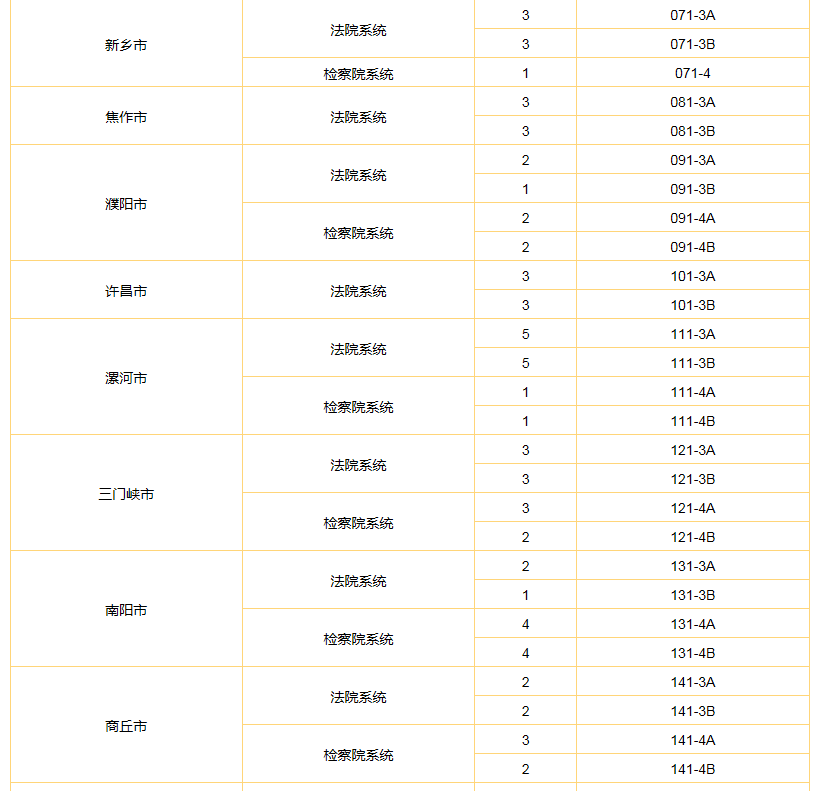2023年河南選調(diào)生考試法檢專項(xiàng)名額分配及志愿代碼表